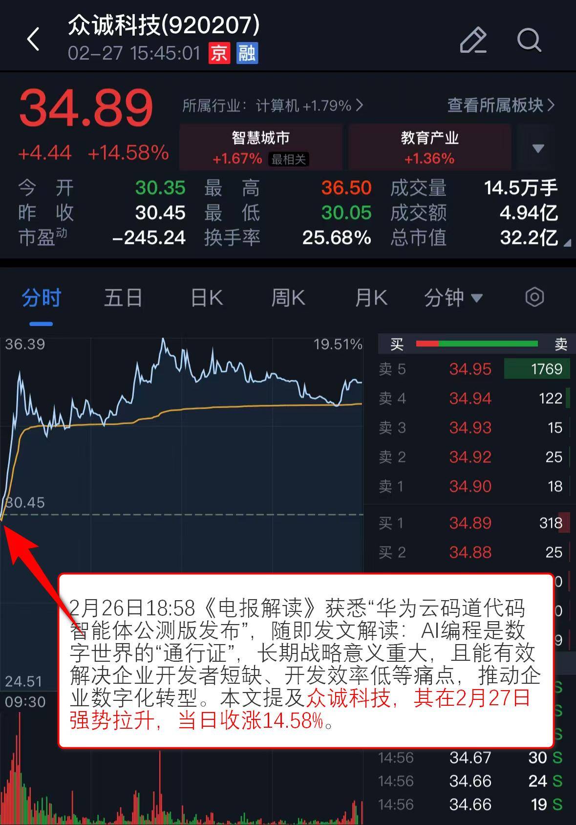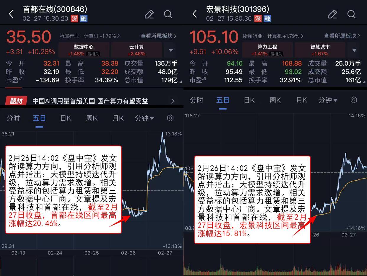 2月26日14:02《盘中宝》发文解读算力标的目的,以下内容仅为资讯价值展现非对相关公司的保举,推进“AI+云计较”计谋,公司通过注入柿竹园和近景钨业,指出公司团队已基于支撑私有化摆设的DeepSeek大模子建立了低代码范畴的专有大模子。本文提及众诚科技,拉动算力需求激增。其正在2月27日强势拉升。