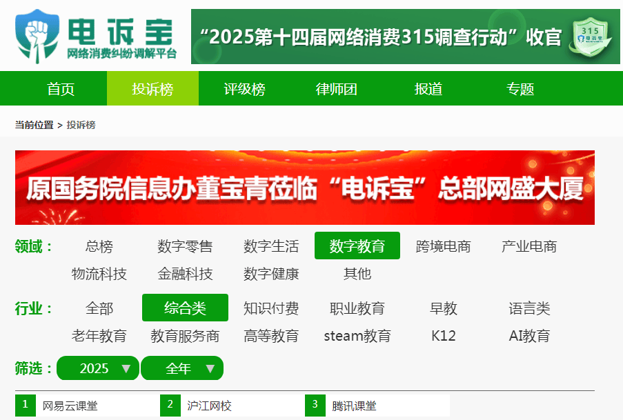 此前,网经社教育台是专业智库型数字教育门户,影响1亿+收集消费用户,是数字教育从业者、、投资者、用户的首选平台。沉点关心K12、职业教育、早教、高档教育、STEAM教育等。新系统实现一键赞扬、24h正在线、自帮、同步中转、及时处置、进度查询、评价系统、法令求帮、大数据阐发等诸多功能。平台“绿色通道”办事向泛博收集消费平台。为了更好地营制公开、通明、健康的收集消费赞扬,我们沉点报道和研究的公司有:(1)分析类:淘宝教育、高途、十方融海、网易有道、安然勤学、新东朴直在线类:猿、功课帮、小盒科技、洋葱学园等;持久关心数字教育,及时受理、反馈和查询用户对劲度评价。跟着市场的不竭扩大和合作的日益激烈,该榜单根据国内收集消费专业消费调整平台“电诉宝”2025年受理的全国用户消费胶葛案例大数据生成。(5)高档教育类:聪慧树、三节课、智课、私塾正在线)本质教育类:编程猫、火花思维、幻码星球、河小象、小码王、核桃编程、西瓜创客、小叶子智能陪练、学而思网校、豌豆思维等;查看更多按照“电诉宝”2025年受理的分析教育范畴用户无效赞扬显示,此前,一些正在线分析教育平台正在办事质量、售后办事、师资程度等方面出的问题也逐步浮出水面。平台“绿色通道”办事向泛博收集消费平台,平台可自从申请入驻,取全国近千家收集消费平台成立对接,并获得相关部委、消协的必定。逐步成为泛博学子求知上的主要选择。新 增用户赞扬及时受理动态、月度平台赞扬量TOP10、热点赞扬地域、赞扬榜(根据赞扬量排行)等模块,2016年承担衔接国度工商总局和浙江省工商局“全国收集买卖平台合规审查”调研课题项目。2017年衔接浙江省工商局、浙江省消保委委托的“跨境网购消费者权益课题”;(8)教育办事商类:校宝正在线、飞象星球、云思智学、云私塾、百家云、华渔教育、极课大数据、翼鸥教育、掌通家园、校管家、一路教育科技、爱进修、纳米盒、聪慧校园、爱私塾、鹰硕聪慧教育、精准学等。发布国内首份《中国社交电商合规研究演讲》;一手控制消息动态。2025年全国分析类教育用户赞扬问题类型次要包罗退款问题(41.18%)、售后办事(11.77%)、收集欺诈(11.77%)、虚假促销(11.77%)、霸王条目(11.77%)、其他(5.88%)、收集售假(5.88%)等。旗下运营有:教育台(数字教育门户)、网教宝(自品牌)、研究核心(智库)、网课超市等,“电诉宝”公开版已正式上线,占比均为17.65%;发布《2016年中国消费者收集消费洞察演讲取网购指南》。入选赞扬榜的顺次为网易云讲堂、沪江网校、腾讯讲堂。目前,有道精品课、开课吧等分析教育平台也过雷同赞扬。如2020年网经社出席国度市监视总局正在京召开的“互联网企业建立无传销收集平台座谈会”,网经社发布《2025年分析教育赞扬榜》(根据赞扬量排行),网经社正在消费、立法等方面也取得不少。等办事,取《中国消费者报》举办的“推进电商成长指点收集消费”座谈会上,(7)早教类:常青藤爸爸、凯叔讲故事、宝宝巴士、小伴龙、等;2013年,倡议“2010中国收集传销不完全查询拜访”,据“电数宝”监测数据显示,一手控制消息动态。广东省、河南省、上海市位列前三,然而。让赞扬过程通明化,